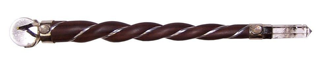 Superbe baguette en bois avec sa pointe en Cristal de Roche qui diffusera l'énergie du soin.