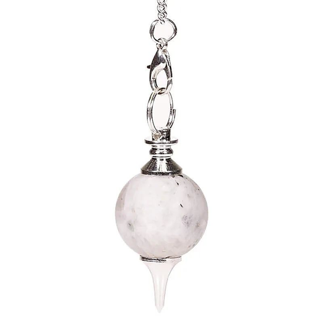 Ce pendule Séphoroton en Pierre de Lune mesure 4 cm et se termine par une pointe pour des recherches sur plan.